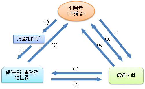 ・入所利用が必要と判断された場合は、最寄りの児童相談所を経由して保健福祉事務所福祉課へ、障害児入所給付費の支給申請を行い、支給決定を受ける必要があります。支給が決定されましたら、当学園との利用契約手続を行っていただきます。